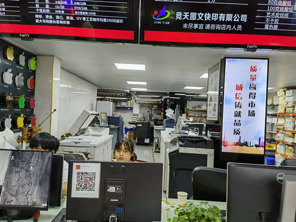 競天圖文始終引領(lǐng)員工站在客戶角度,以客戶需求為我們努力的方向,做客戶信賴的好伙伴,為客戶排憂解難,以“快速·一如既往”為服務(wù)宗旨,努力為客戶創(chuàng)造良好的數(shù)碼快印服務(wù)體驗。經(jīng)濟(jì)大環(huán)境的變化,科學(xué)技術(shù)的日新月異推動著數(shù)碼印刷行業(yè)的快速發(fā)展,在這個機(jī)會和風(fēng)險并存的時代,我們將一如既往、腳踏實(shí)地、專注于數(shù)碼快印事業(yè),不斷提升核心競爭力,希望為社會創(chuàng)造價值,為行業(yè)發(fā)展貢獻(xiàn)一份力量。